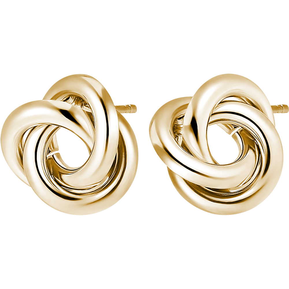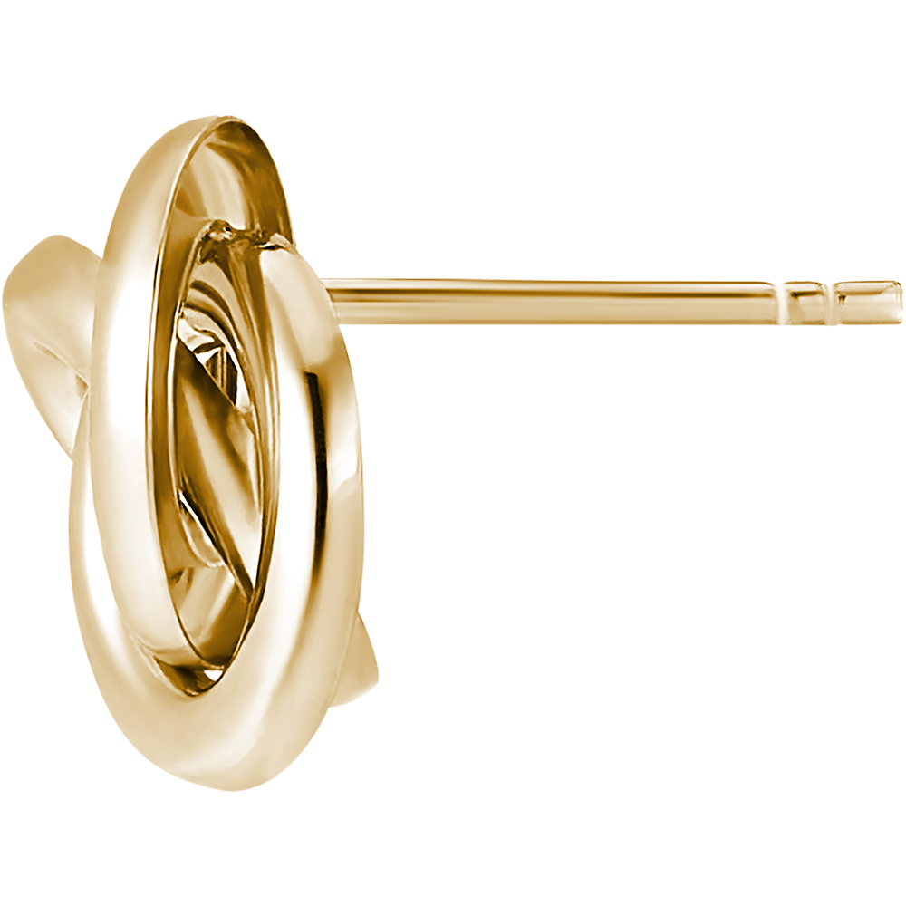 De evenwichtige combinatie van drie geelgouden ringen voor een tijdloos paar oorbellen.