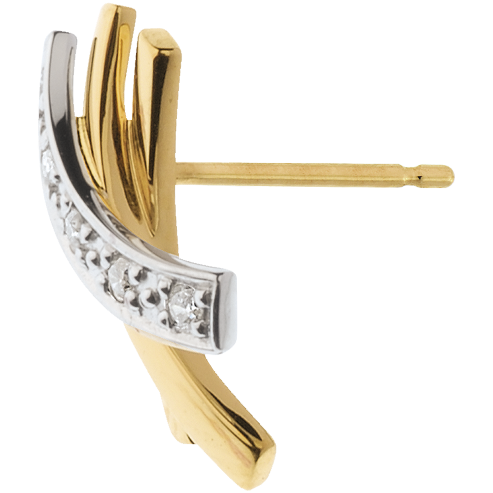 Twee geelgouden banden kruisen een punt van witgoud en diamanten om een gestileerde ster te vormen
