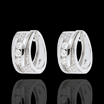 Een subtiel omarmde trilogie voor een evenwicht tussen twee witgouden bogen op een verhard semi-frame.