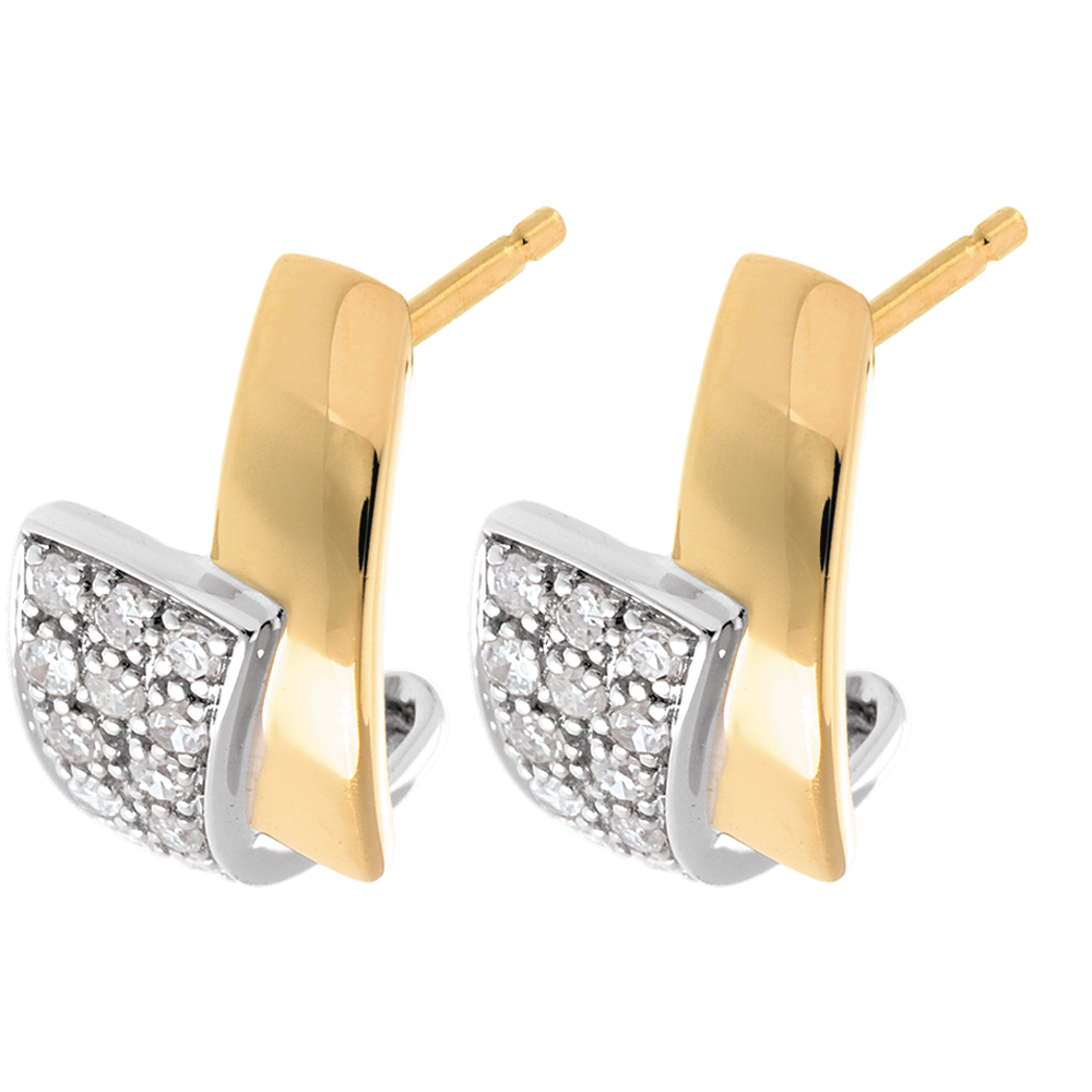 Oorbellen Tropisch 18 karaat witgoud en geelgoud met pavézetting - 24 Diamanten