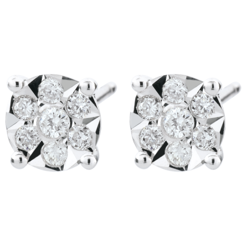 ORIGINE NR. 35Stud oorbellen - Witgoud 9 karaat - Cluster van natuurlijke diamantent ID : 2497