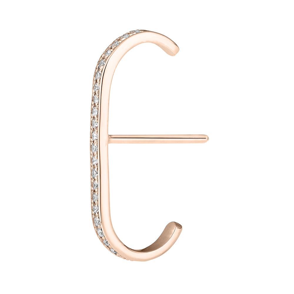 Deze roségouden studs met pavé diamanten versieren de oren als een sprankelende bliksemschicht.