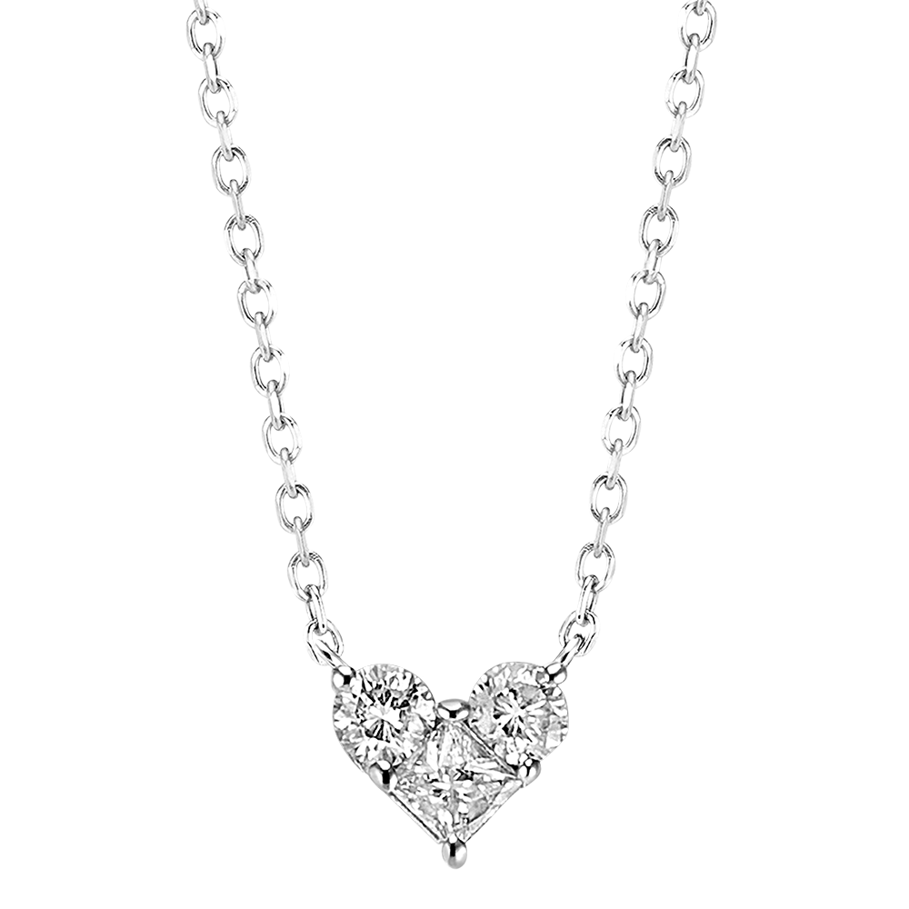 KOSTBAAR GEHEIM NR. 17Halsketting Hart - Witgoud 9 karaat - Cluster van natuurlijke diamantent ID : 5374