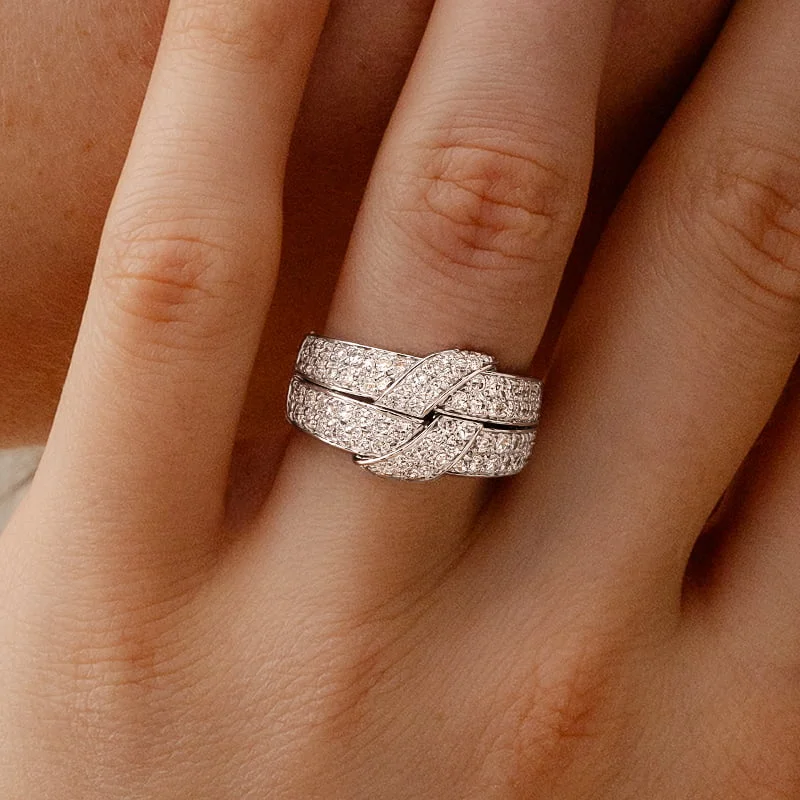 MEER INFORMATIEEen cluster is een samenstelling van kleine diamanten die samengebracht worden om het effect van een grotere steen te creëren, met vermenigvuldigde fonkeling en een uitstekende prijs-kwaliteitverhouding.