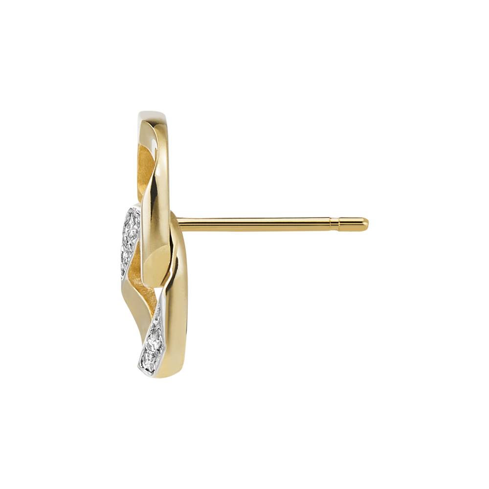 Een paar geelgouden stud oorbellen bestaande uit twee curb schakels, waarvan een met diamanten bezet.