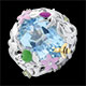Blauwe topaas : 1 - Peridot : 4 - Diamant : 14 - Total: 10.8 karaat