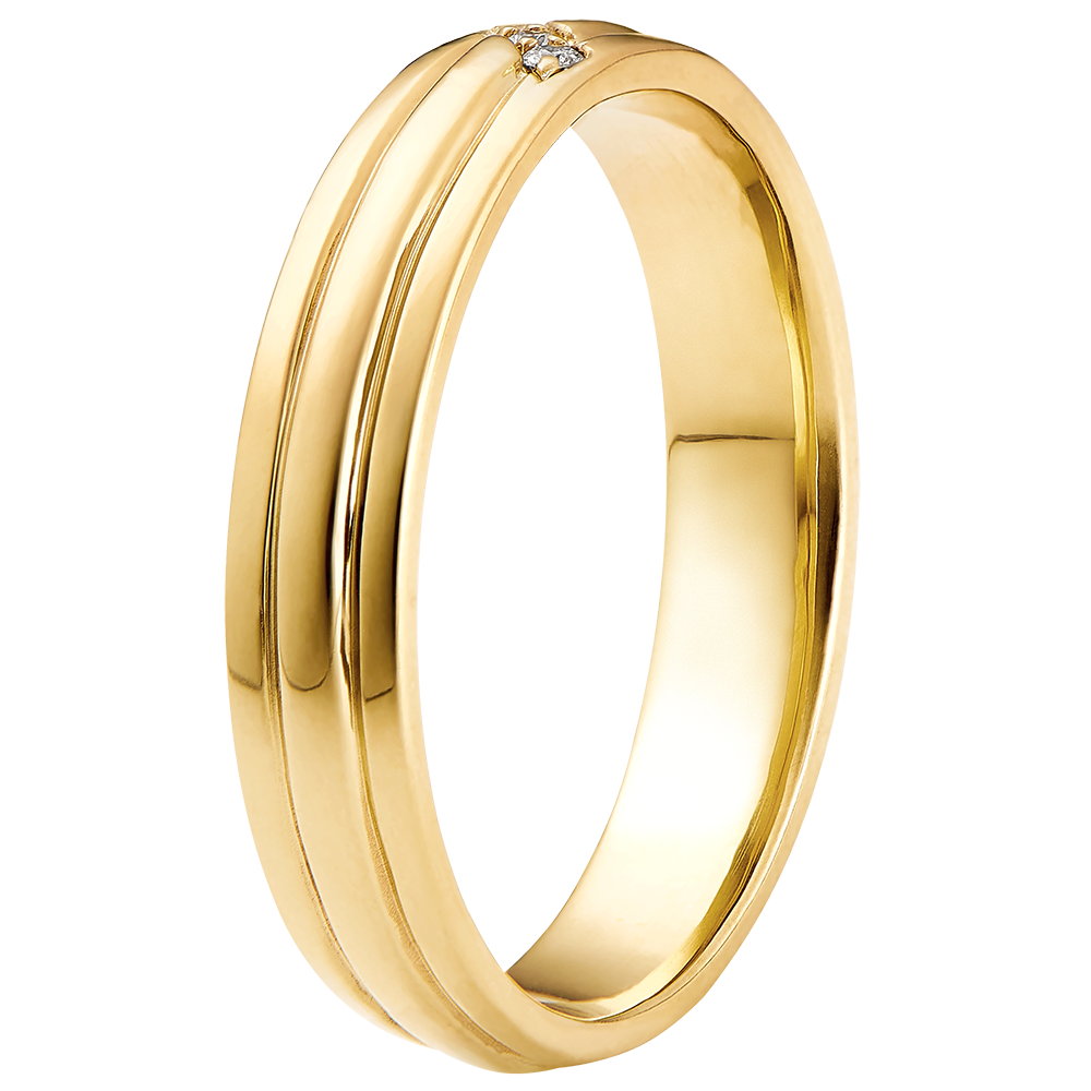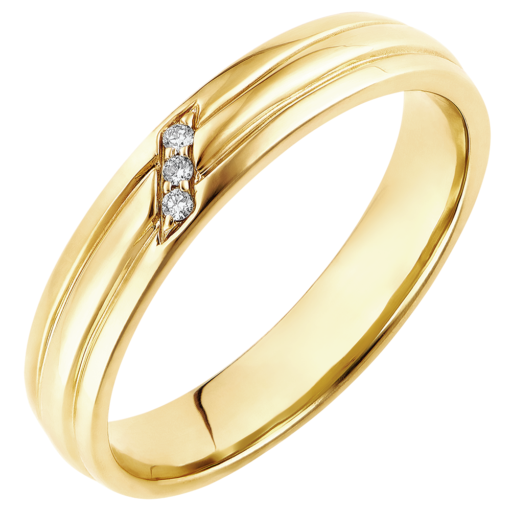 3 diamanten : 0.03 karaat - Geel goud (18 karaat = 750/-): 5.2 g.