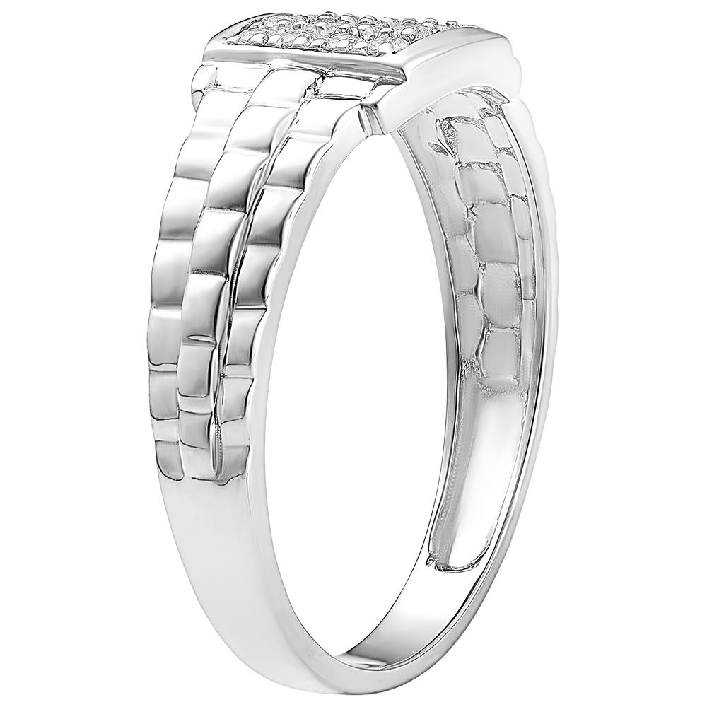 Een zegelring van witgouden steken waarvan het midden royaal is bezet met 16 diamanten.