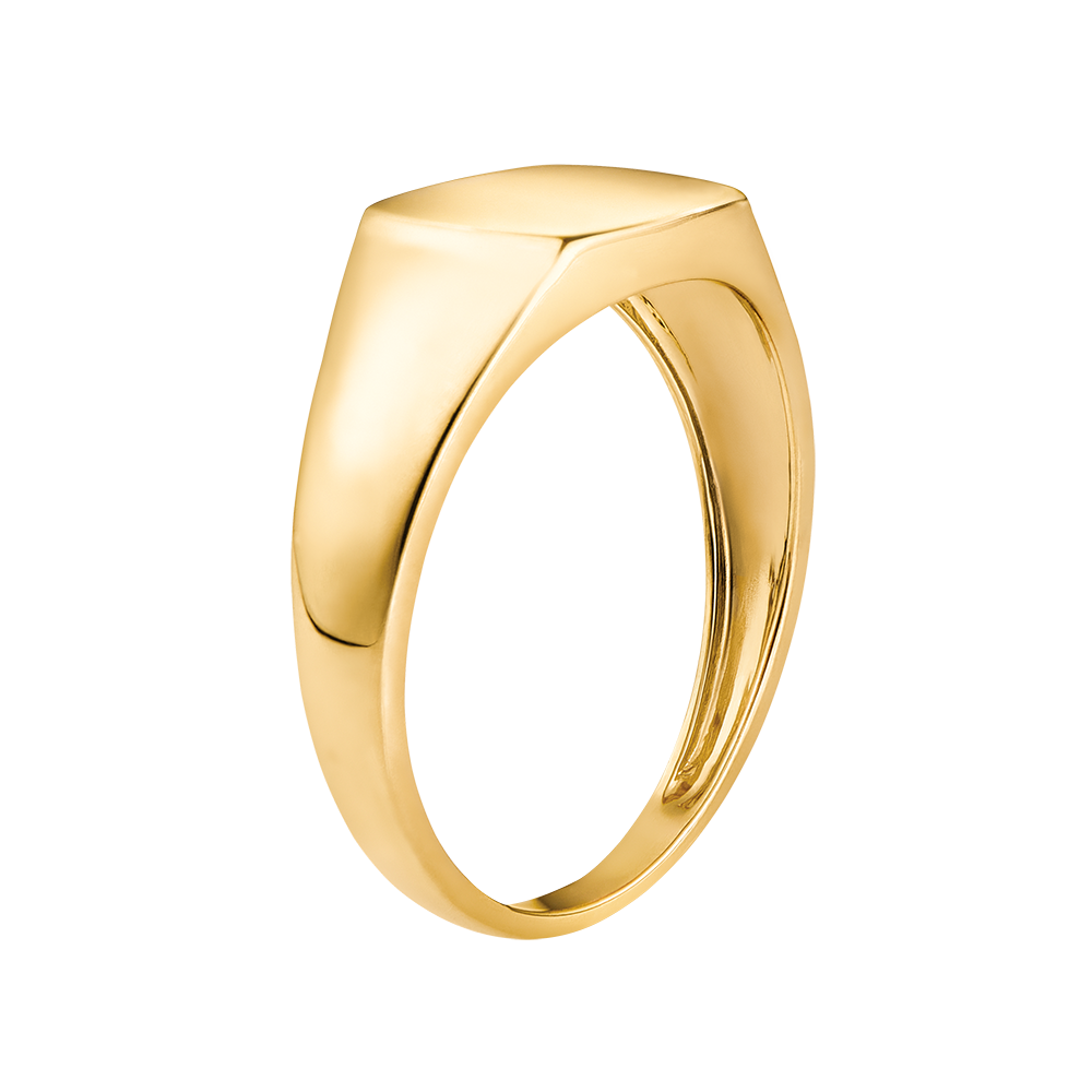 Een geheel geelgouden zegelring met een rondvormige plaat.