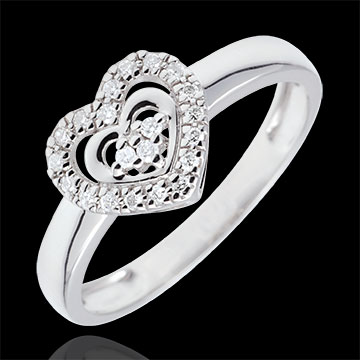 KOSTBAAR GEHEIM NR. 13Ring Hart - Witgoud 18 karaat - Cluster van natuurlijke diamantent ID : 2753 4.3