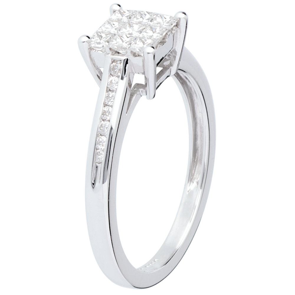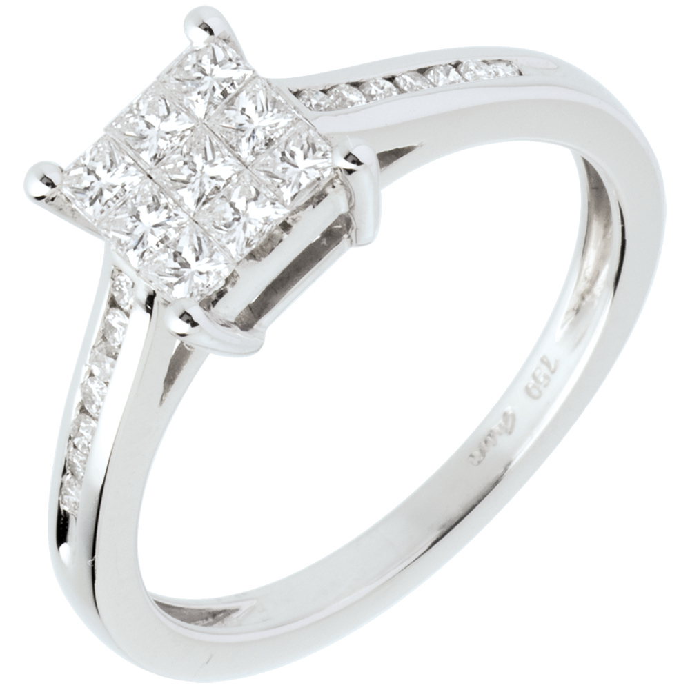 ORIGINE NR. 14Verlovingsringen - Witgoud 18 karaat - Cluster van natuurlijke diamantent ID : 433