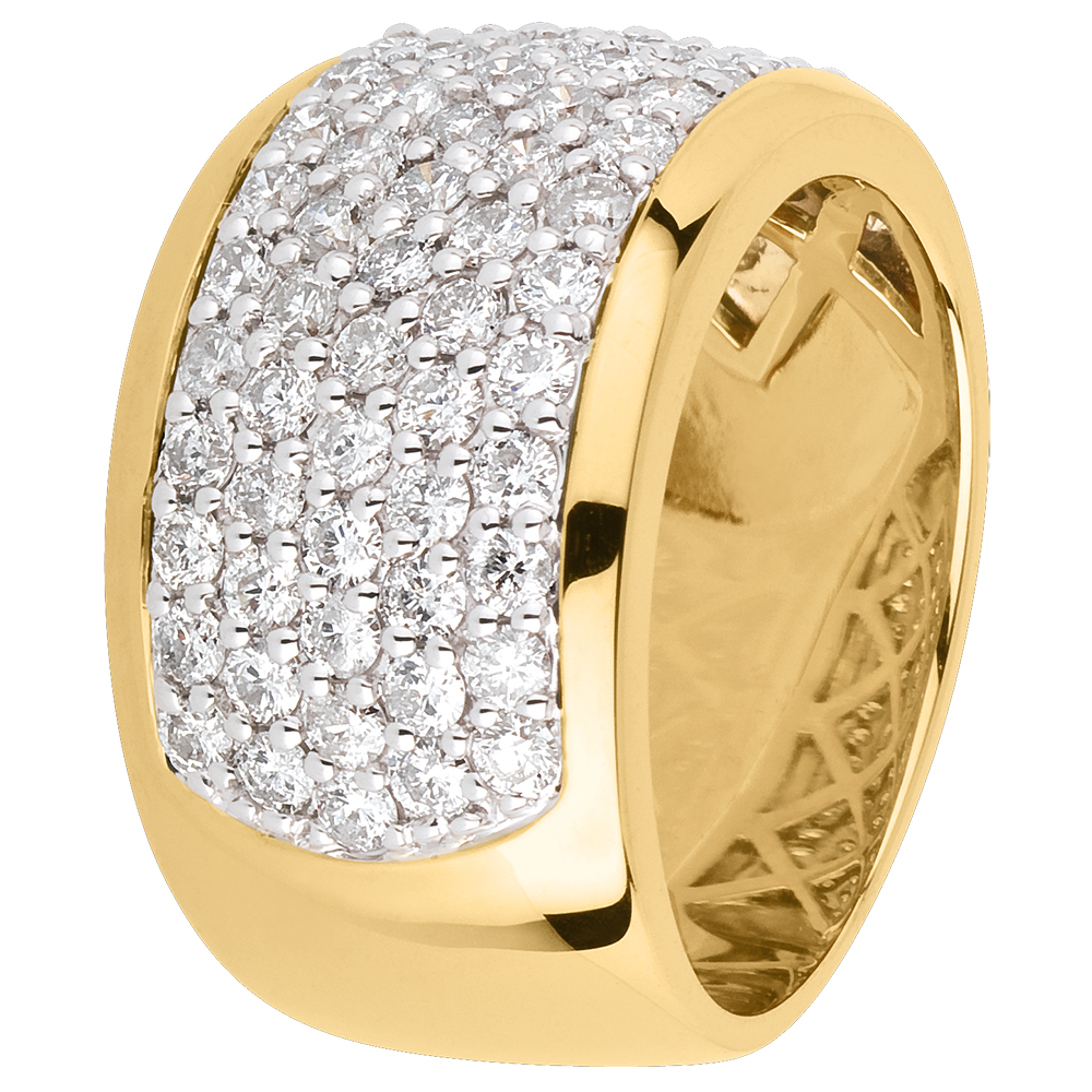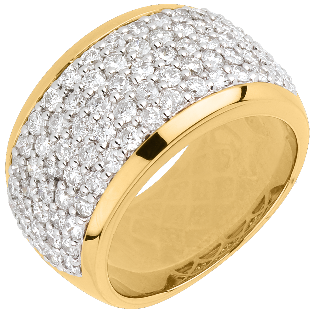 De iriserende glans van een zorgvuldige diamanten pavézetting, voor een uitzonderlijke ring van luxe en verfijning.