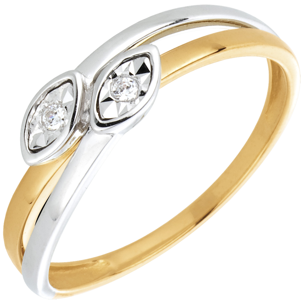 MAGISCHE TUIN NR. 3Ring Blaadjes - Witgoud en Geelgoud 18 karaat - Diamant ID : 1547