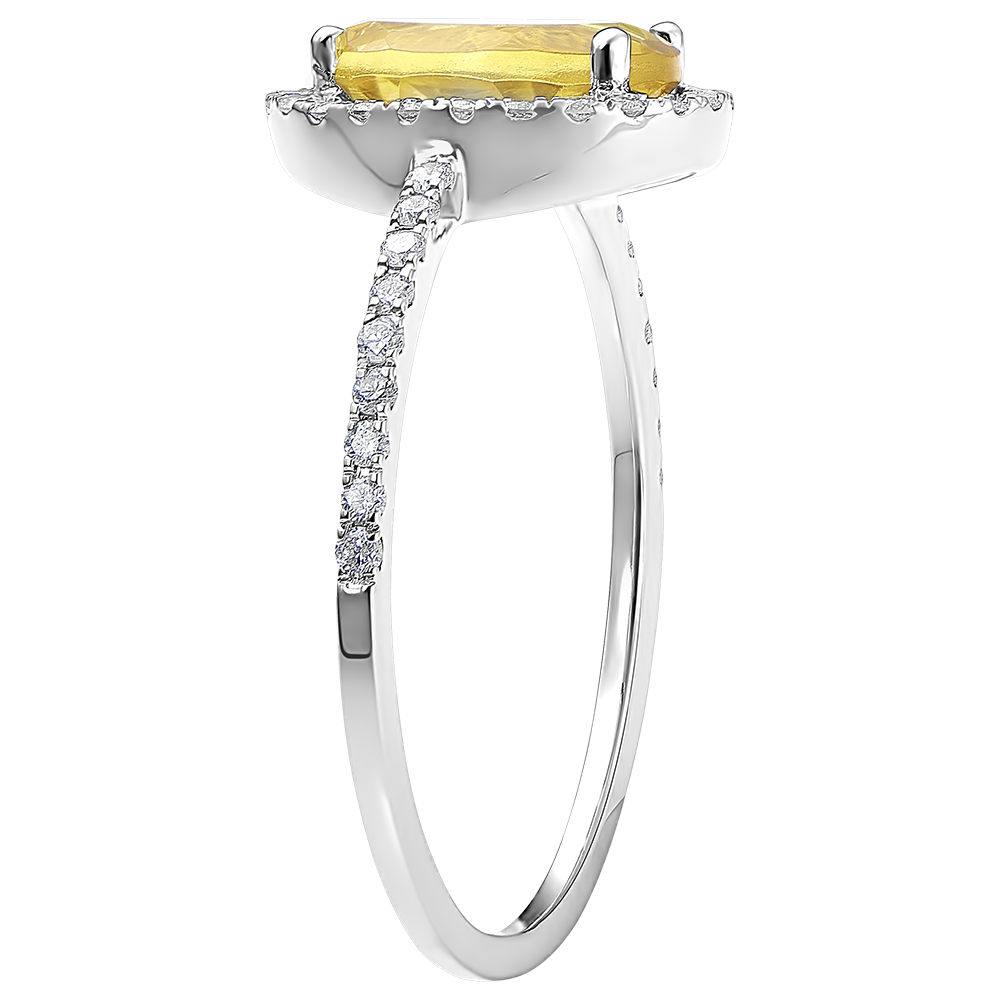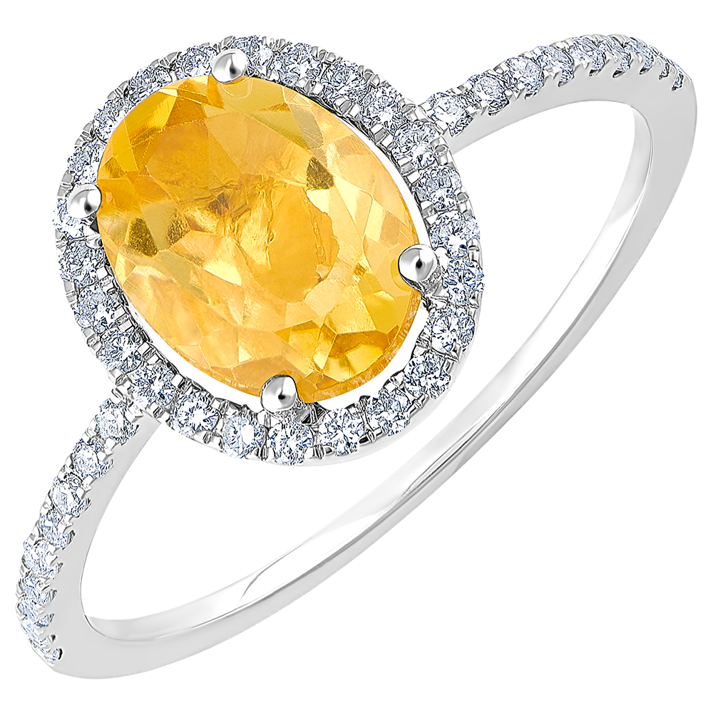 Een cirkel van diamanten beschermt een citrien in het hart.