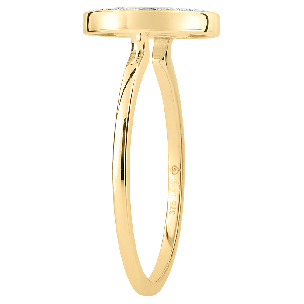 9 diamanten : 0.03 karaat - Geel goud (9 karaat = 375/1000): 1.9 g.
