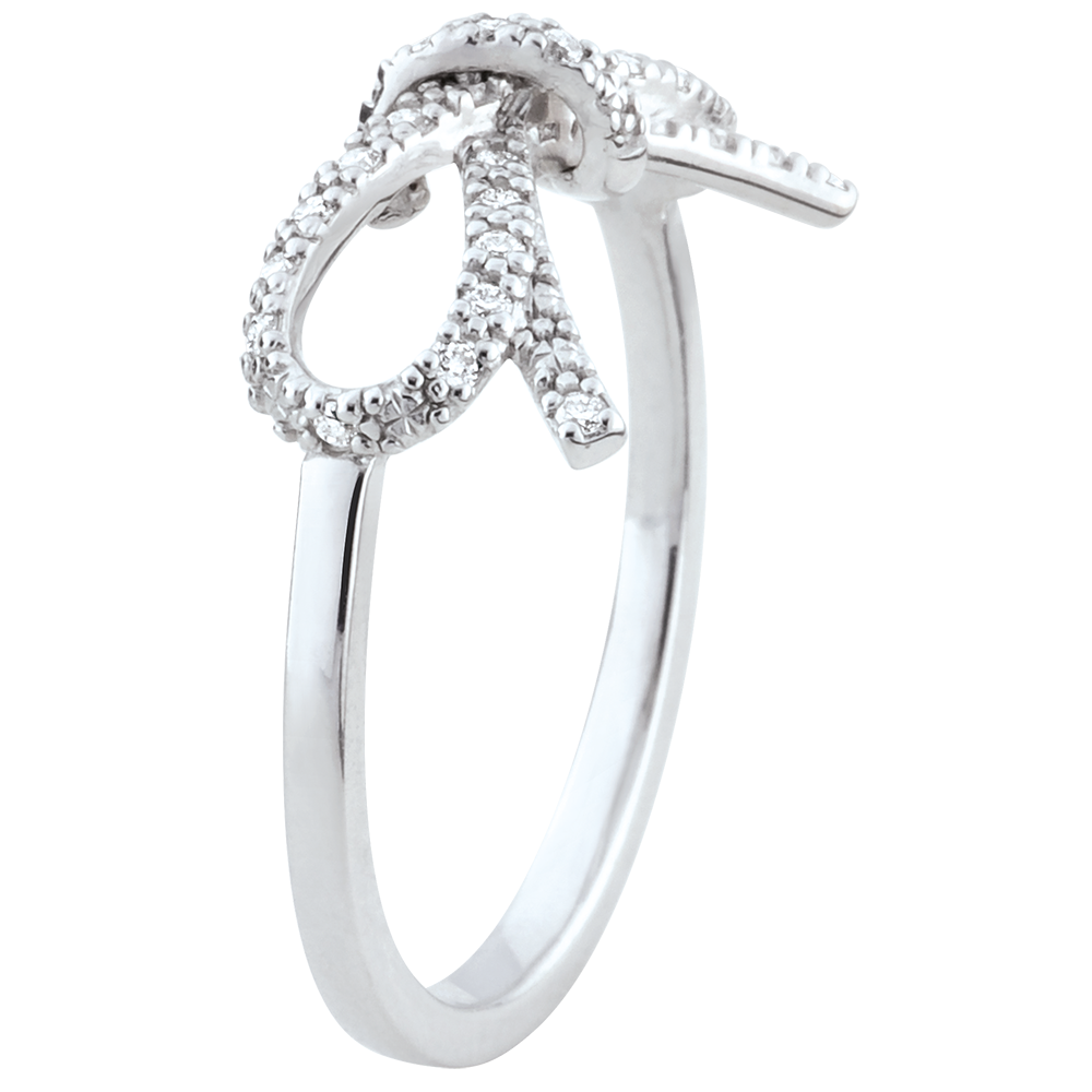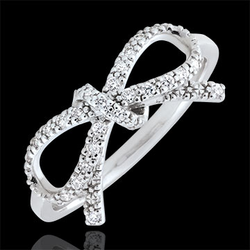 Een knoop gemaakt van diamanten voor de perfectie aan uw vinger, deze brengt glamour en vrouwelijkheid aan al uw stijlen.
