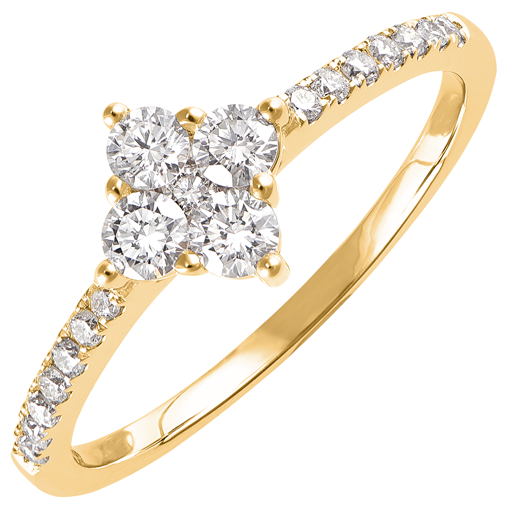 LENTEKRIEBELS NR. 75Verlovingsringen - Geelgoud 18 karaat - Cluster van natuurlijke diamantent ID : 4566