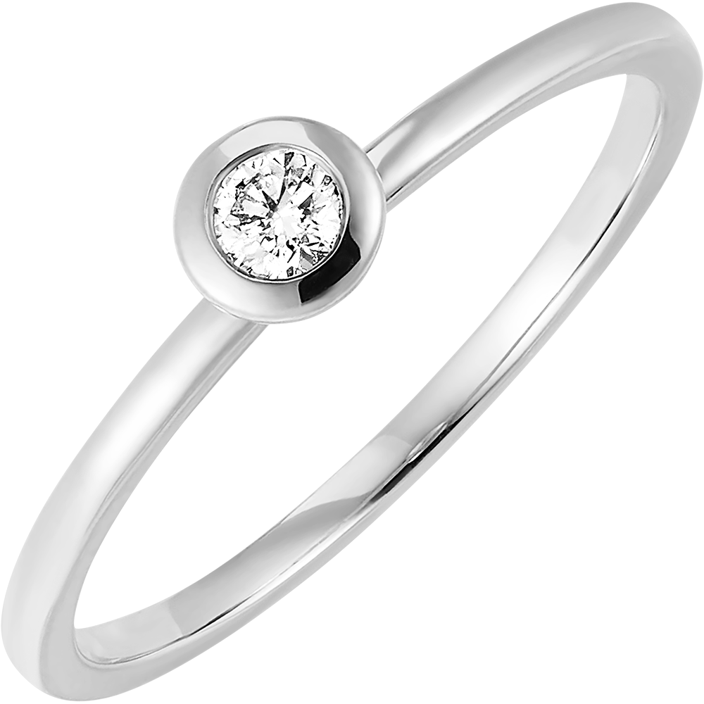 Ontdek deze vernieuwde solitairring uit de Frisheid-collectie, vervaardigd uit 9 karaat witgoud. De ronde diamant van 0,09 karaat is gezet in een gesloten zetting.