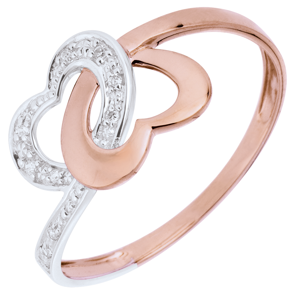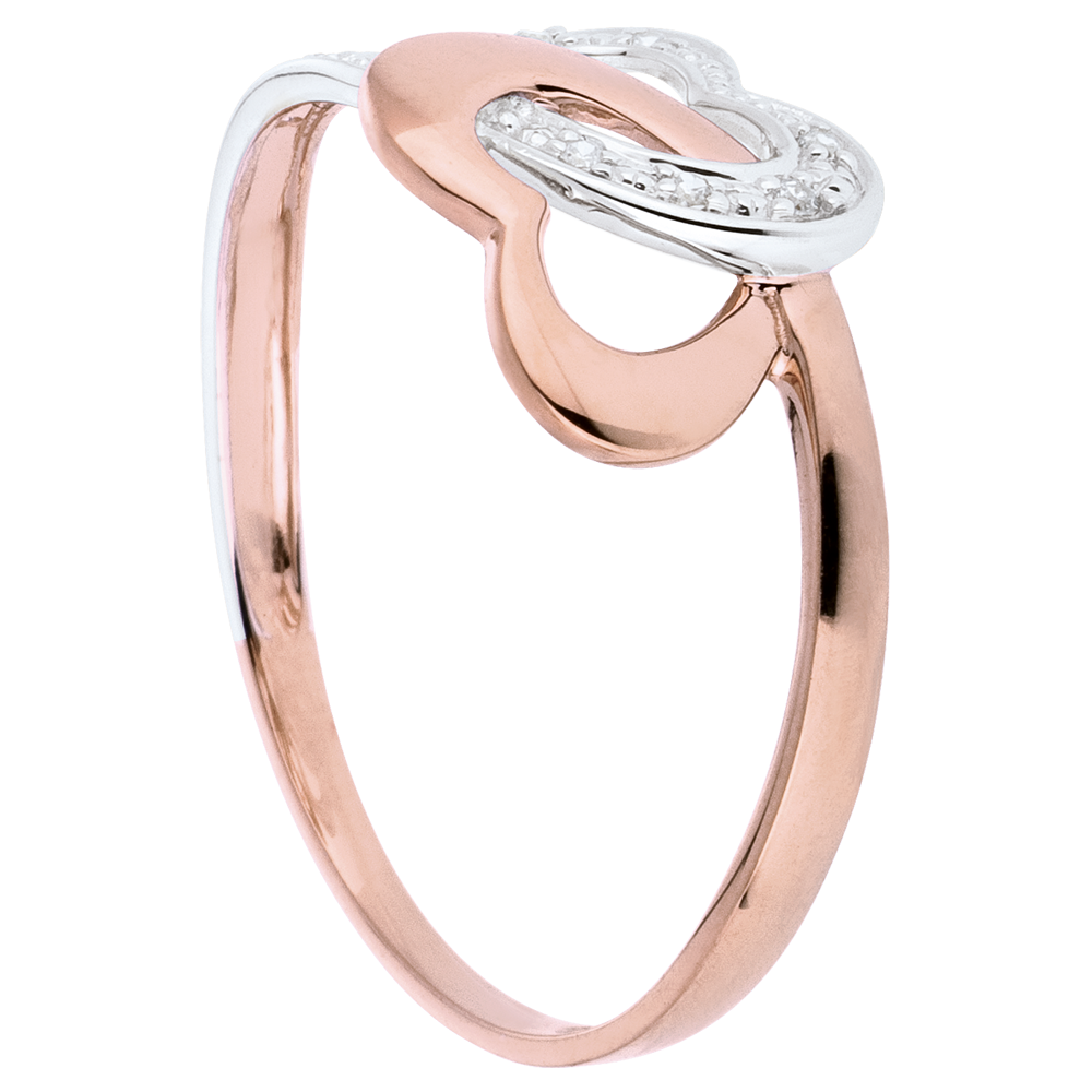 Twee gouden harten gemengd om zich te verenigen. Half roze en half witgoud met diamant.