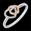 Deze ring is een harten duo in witgoud en roségoud bewerkt en bezaaid met diamanten die geïnspireerd is op tederheid en geborgenheid.