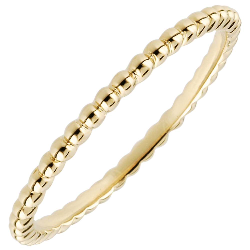 Een veelheid aan geelgouden parels opeenvolgend om een ring te vormen. Perfect voor een originele en verfijnde trouwring, met meerdere kleuren of gecombineerd met andere ringen.