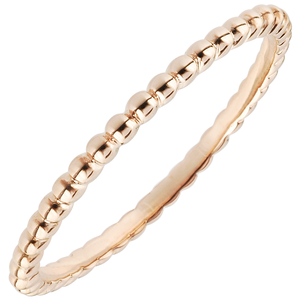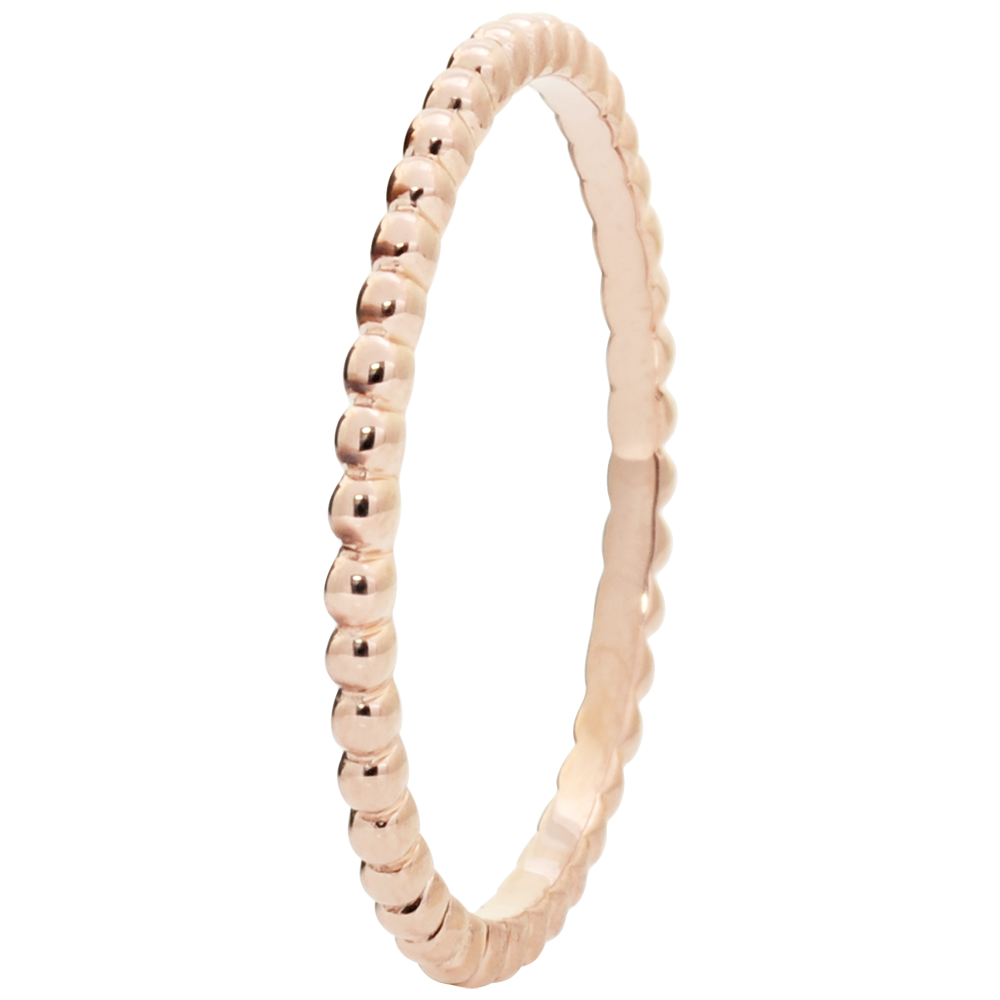 Een veelheid aan roségouden parels opeenvolgend om een ring te vormen. Perfect voor een originele en verfijnde trouwring, met meerdere kleuren of gecombineerd met andere ringen.