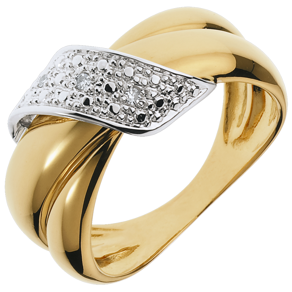 Ring Gouden Krul - 18 karaat geelgoud met pavézetting - 3 Diamanten