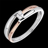 Een solitaire op 2 vingers van witgoud en 2 vingers van roségoud voor een elegante ring.