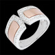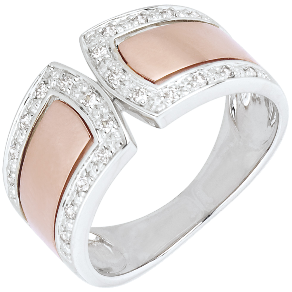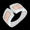Strak design met grote elegantie verkregen door een roségouden band en een pavézetting van briljanten op witgoud.
