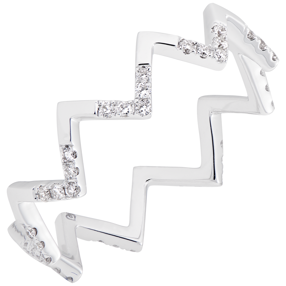 Het zigzagpatroon symboliseert passie en vrijheid, perfect om alleen of gestapeld te dragen.