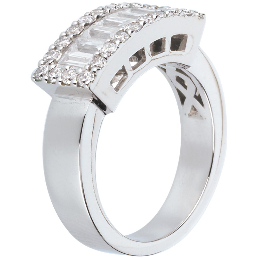 31 diamanten : 1.38 karaat - Wit goud (18 karaat = 750/-): 8.9 g.