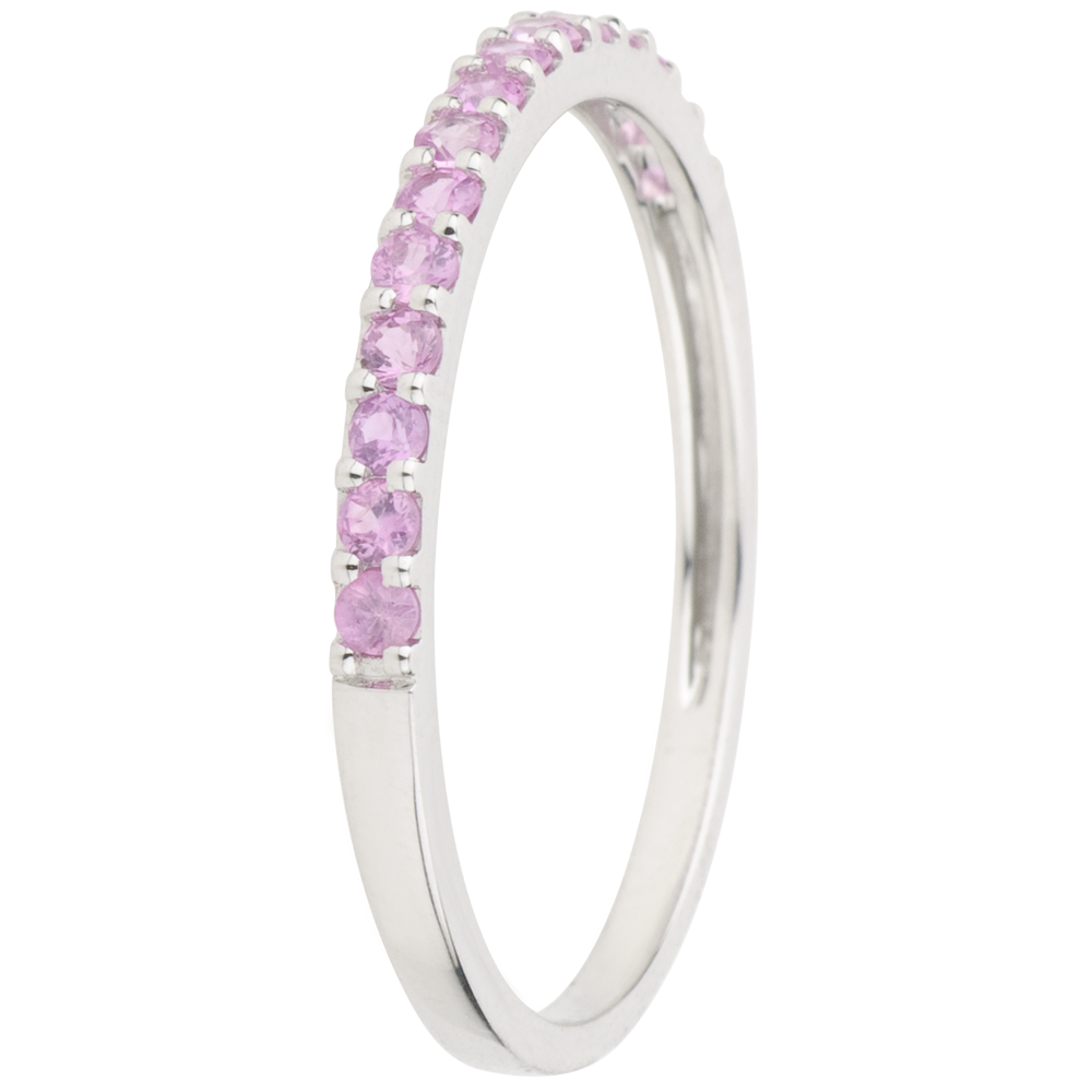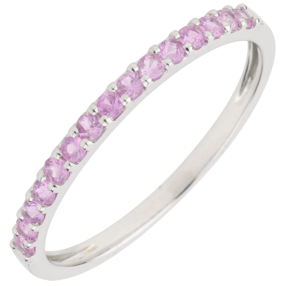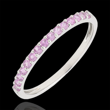 Ring Paradijsvogel - een rij - 9 karaat witgoud en Roze Saffier