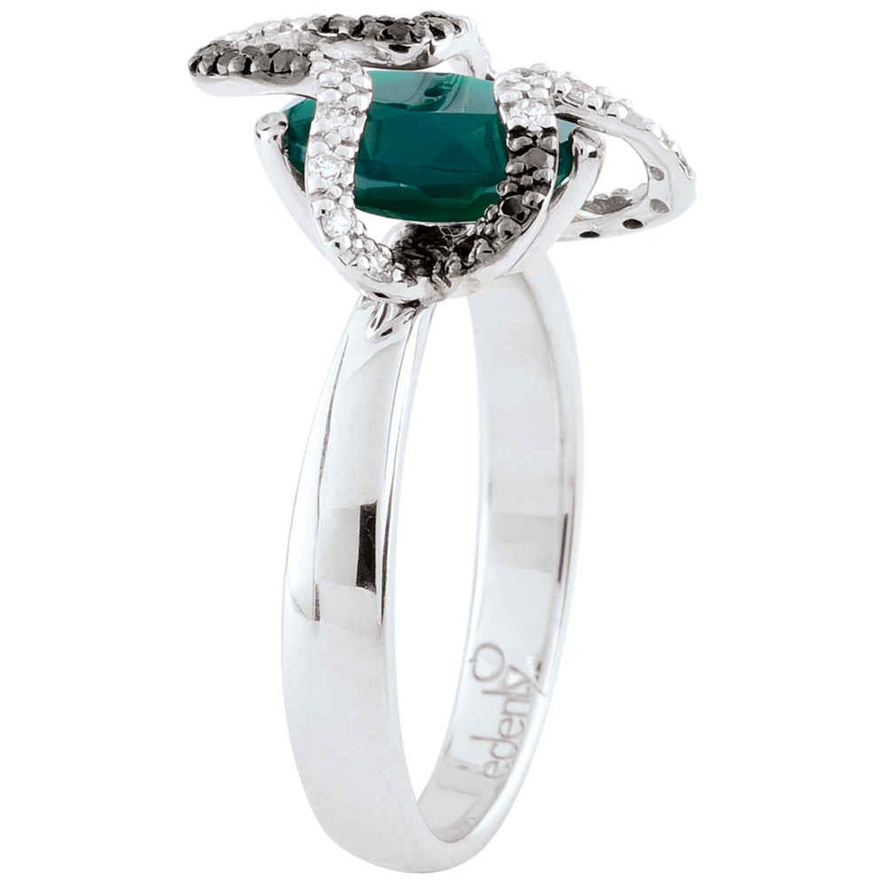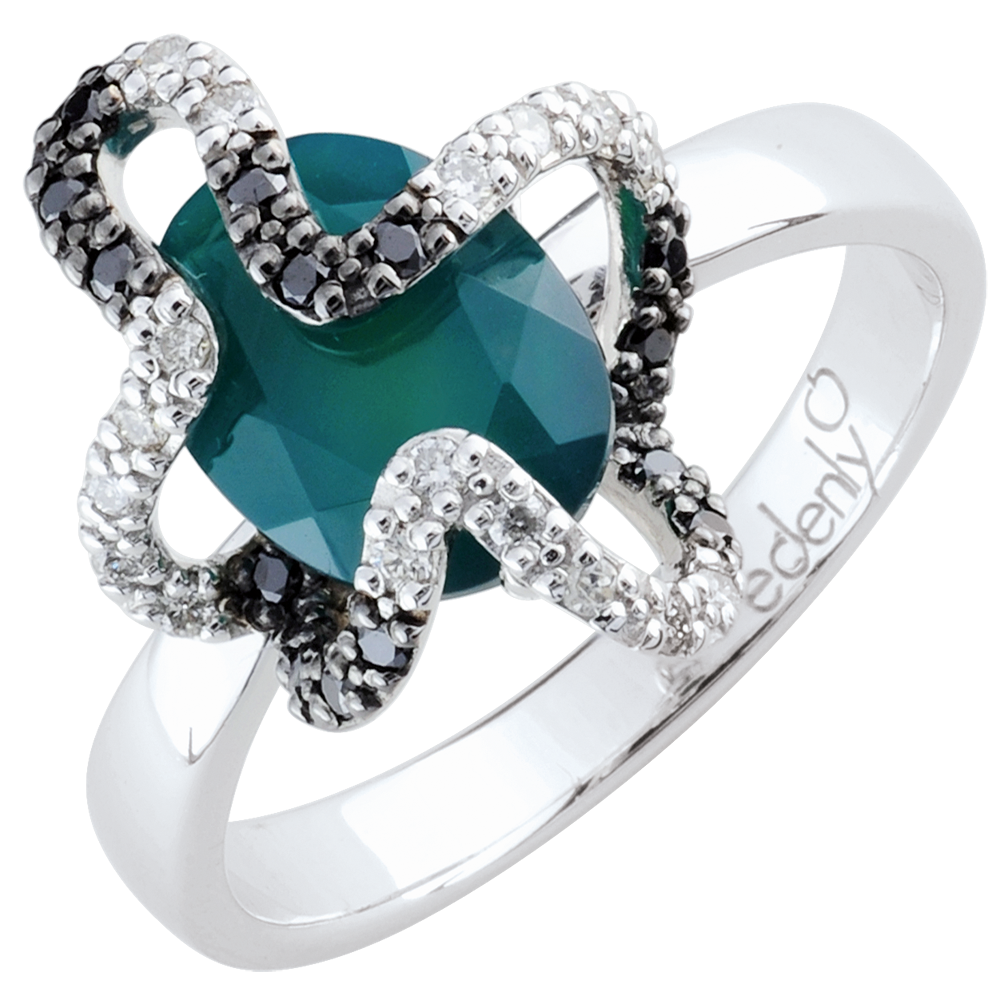 - Harmonieuze combinatie van zwarte en witte diamanten met groene agaat