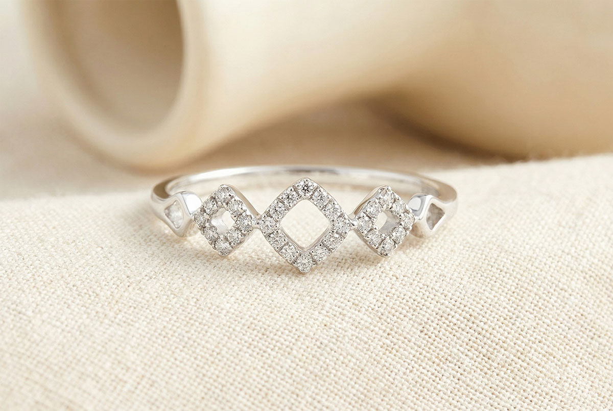 MEER INFORMATIEEen cluster is een samenstelling van kleine diamanten die samengebracht worden om het effect van een grotere steen te creëren, met vermenigvuldigde fonkeling en een uitstekende prijs-kwaliteitverhouding.