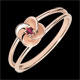 De bloemblaadjes van deze kleine roos in roségoud zijn geopend op een robijn hart voor de eeuwigheid.
