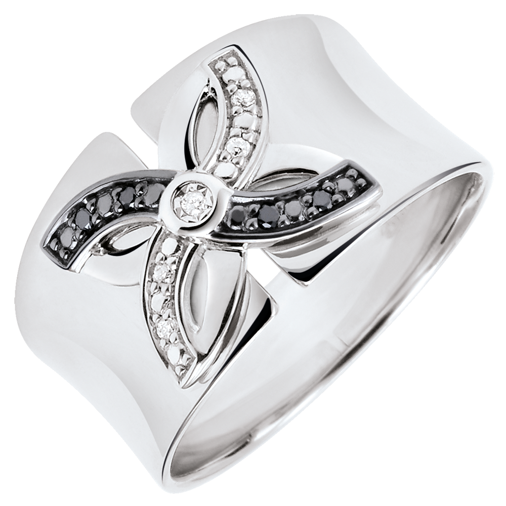 INFINITY NR. 30Ring Bloemen - Witgoud 18 karaat - Zwarte diamant, Diamant ID : 3230 4.8
