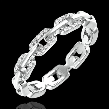 Royale Cubaanse schakels bezet met diamanten laten deze witgouden ring schitteren. Een klassieker die opnieuw bezocht is.