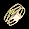 Als twee waardevolle oogleden beschermen de gouden en diamanten lijnen de kostbare pupil, gesymboliseerd door een spoel van peridot. Een gesofisticeerde ring om alle dagen te dragen of bij grote gelegenheden.