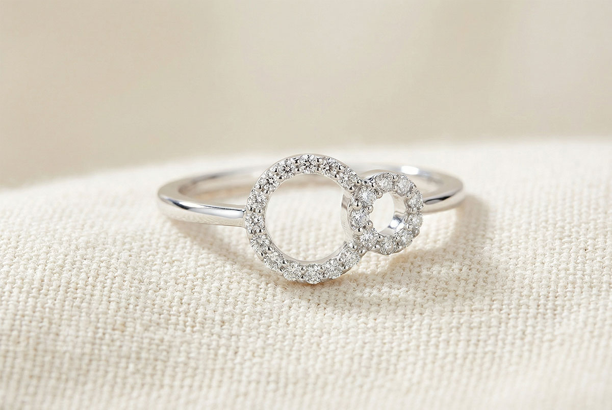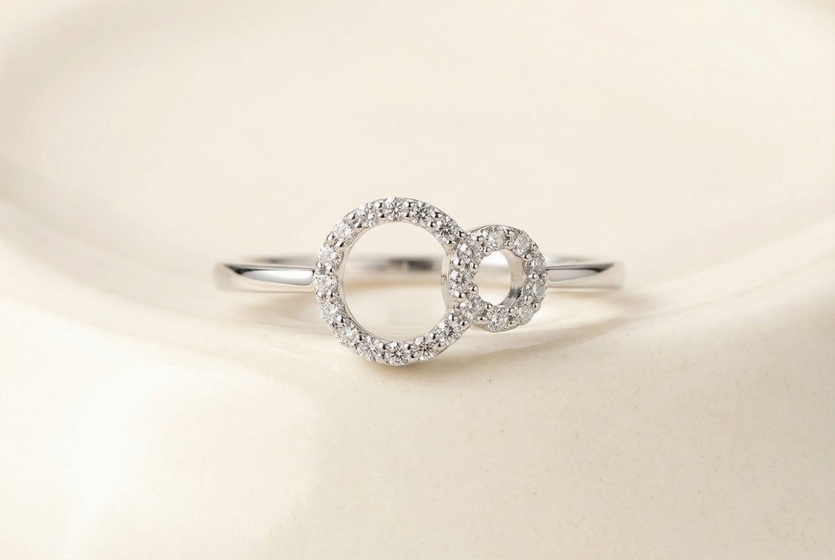 Een zachte, minimalistische ring, samengesteld uit een met diamanten bezette lus, het teken van oneindigheid. Een sober, essentieel maar volstrekt hedendaags frame.