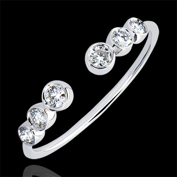 Een jong en creatief model samengesteld uit 6 ingesloten diamanten, die elkaar in echo antwoorden. Een verfijnde, bijzonder vrouwelijke ring.