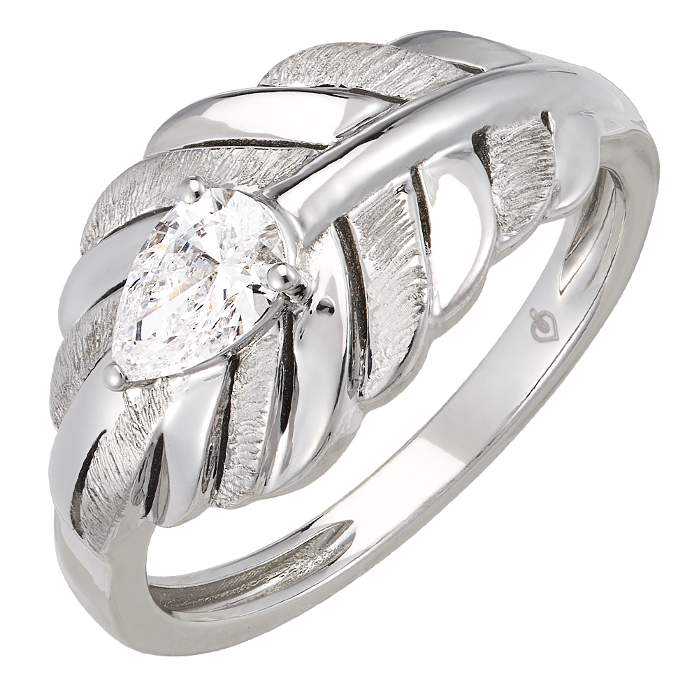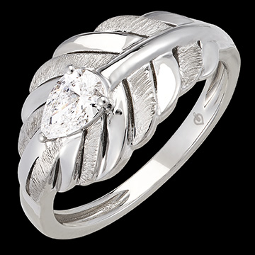 De Altesse-ring in 18 karaats witgoud benadrukt een centrale synthetische diamant van 0,37 karaat in peervorm. Zijn door veren geïnspireerde ontwerp belichaamt perfect de elegantie en verfijning van de Panache collectie.