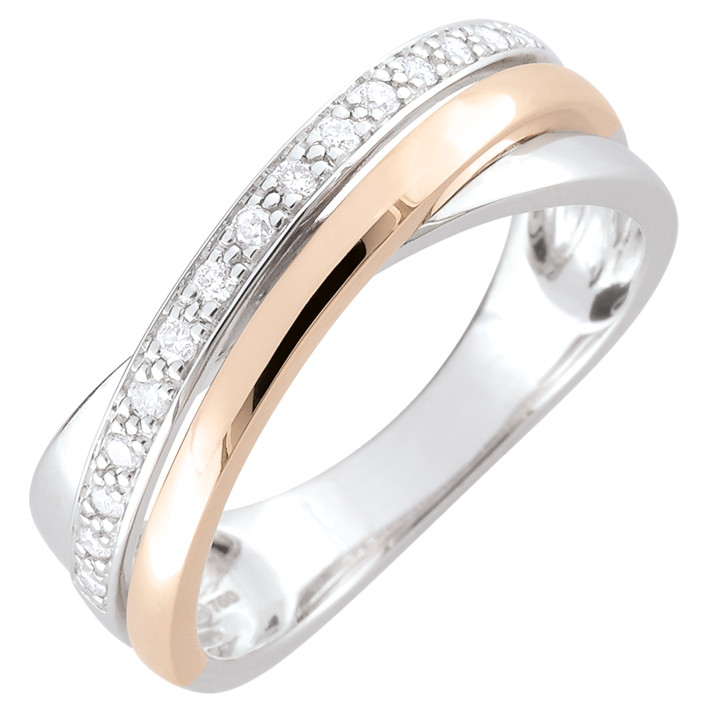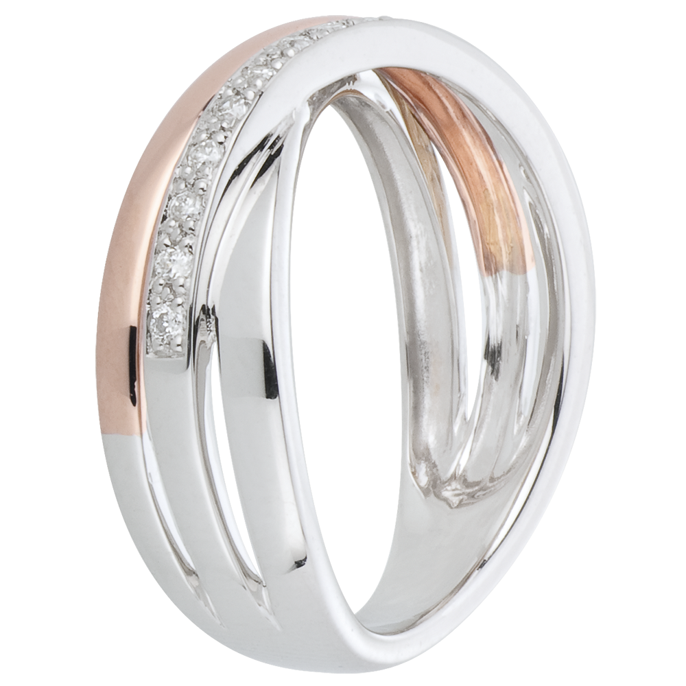 15 diamanten : 0.12 karaat - Wit en roségoud (18 karaat = 750/-): 3.9 g.