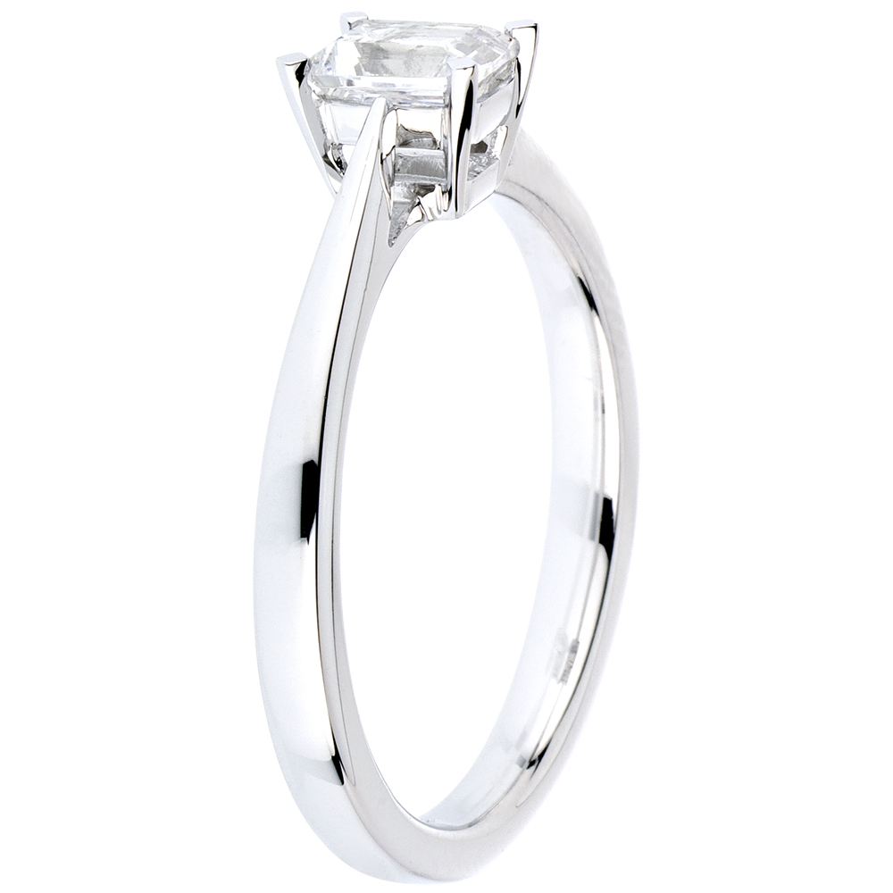 Een solitairee smaragd versterkt door een zuiver en elegant frame.