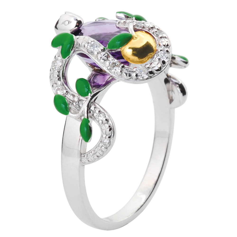 DAGDROMEN NR. 17Ring Slang - Zilver - Amethist, Diamant ID : 6309