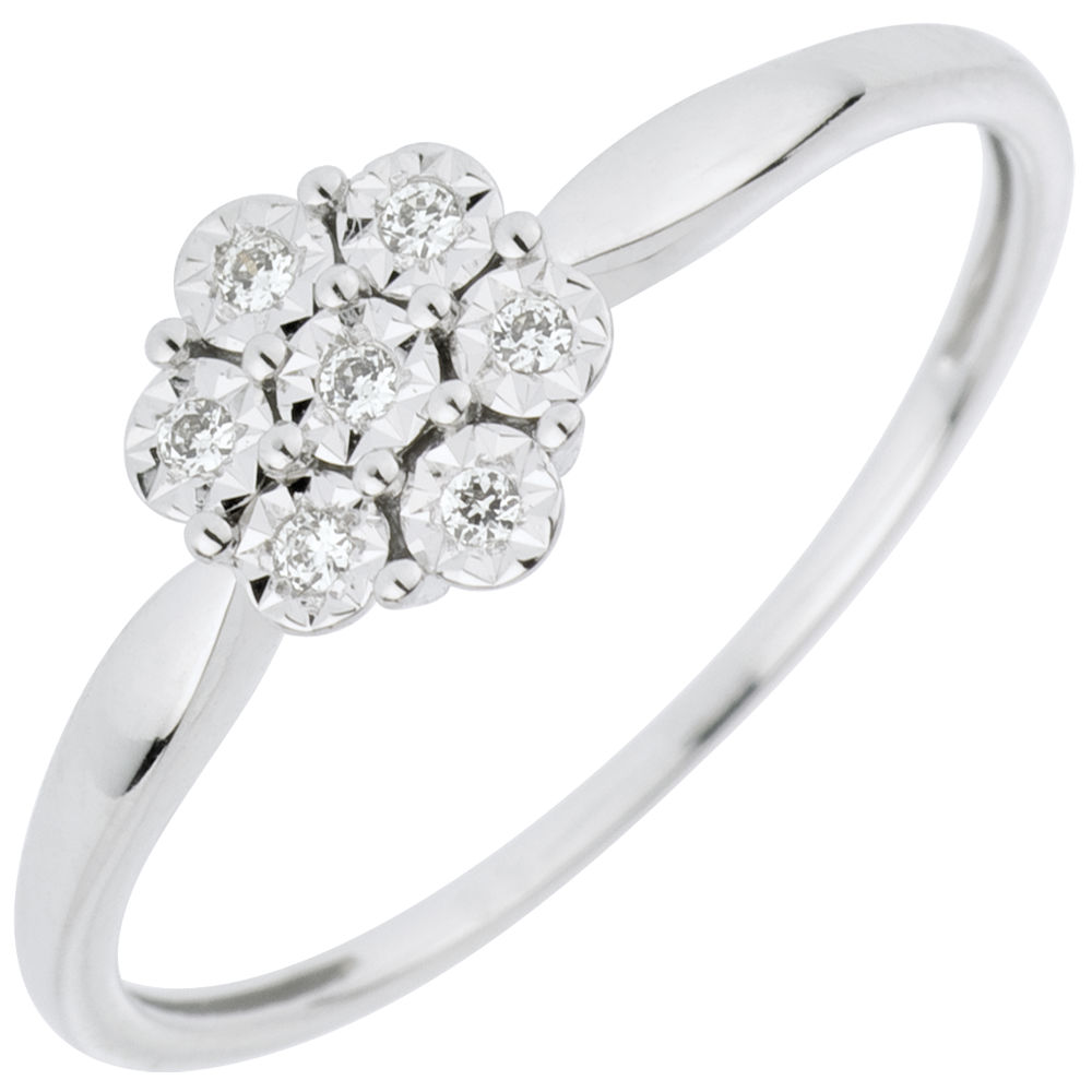 Ring Lentekriebels - Solitaire - Sneeuwvlok - 7 Diamanten - 18 karaat witgoud