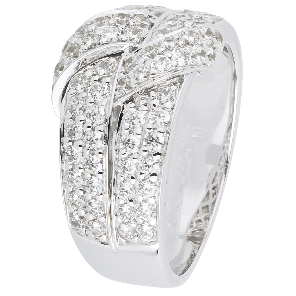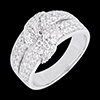 Het witte goud geplaveid met een diamanten band wikkelt zich rond een dubbele ring.