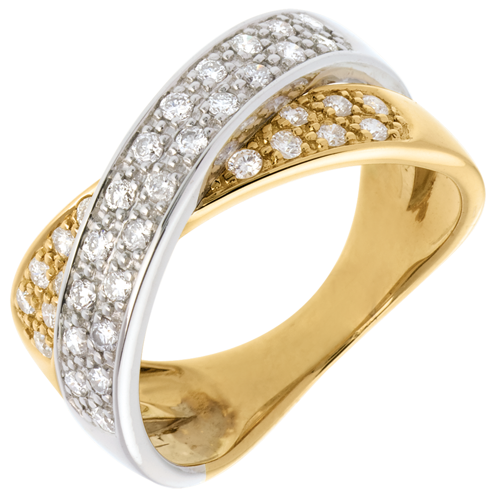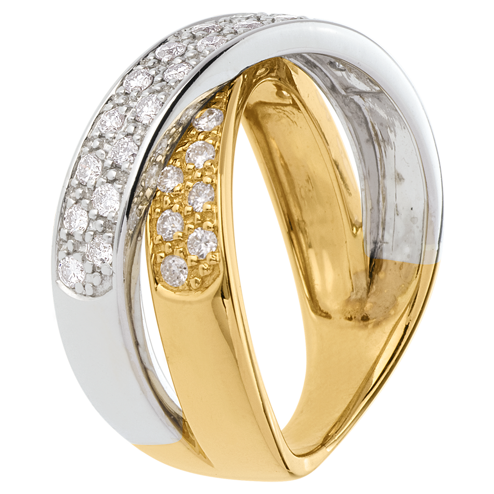 Een tandem ellipsen in geel en witgoud en betegeld voor een bondgenootschap van perfecte harmonie.