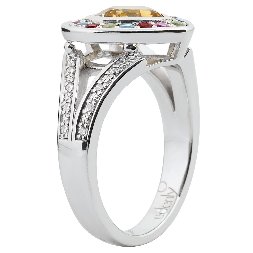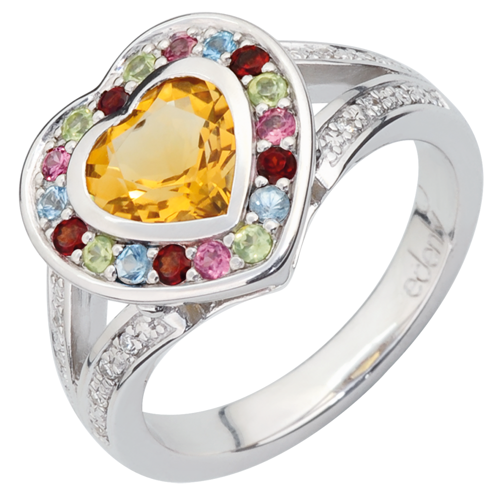 DAGDROMEN NR. 19Ring Hart - Zilver - Gele citrien, Rosé tourmalijn, Blauwe topaas, Granaat, Peridot, Diamant ID : 6297 5