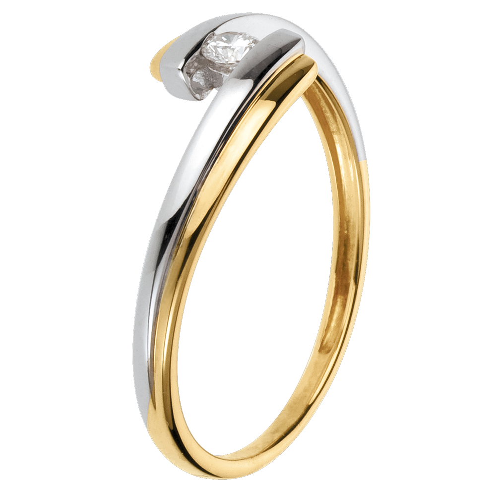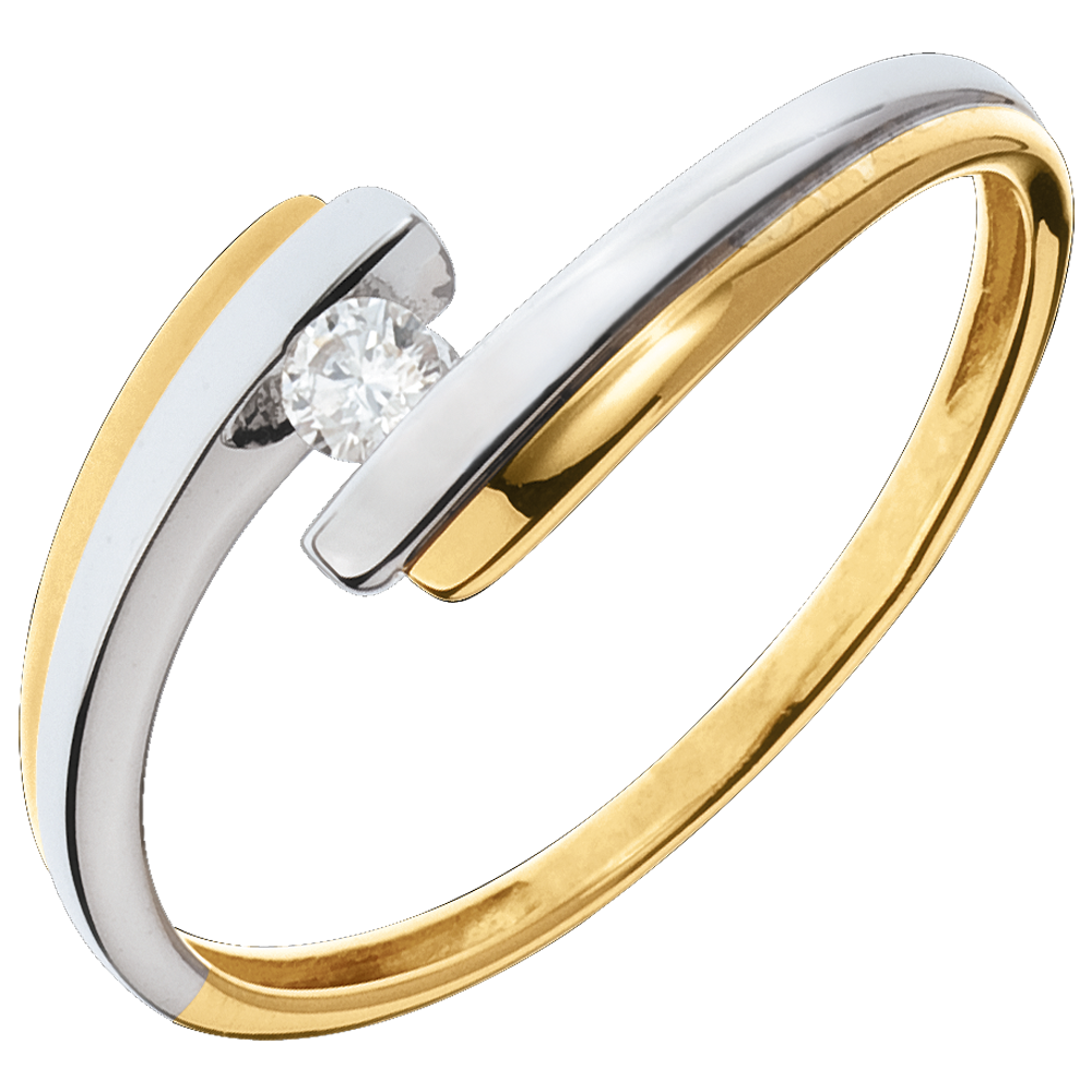 Ring Liefdesnest - Zonnestelsel - 18 karaat witgoud en geelgoud - 0.08 karaat