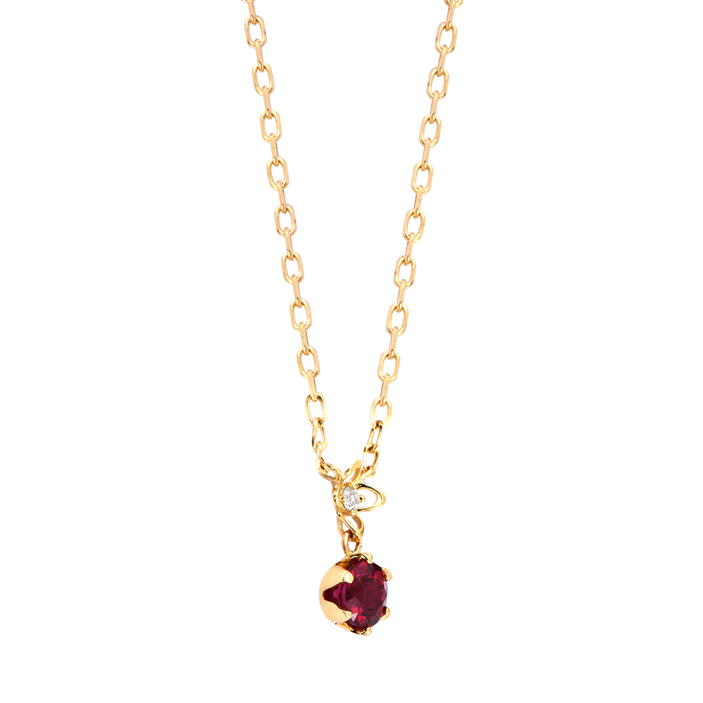 PARADIJSVOGEL NR. 15Halsketting Bloemen - Geelgoud 9 karaat - Synthetische robijn, Laboratorium diamant ID : 3900